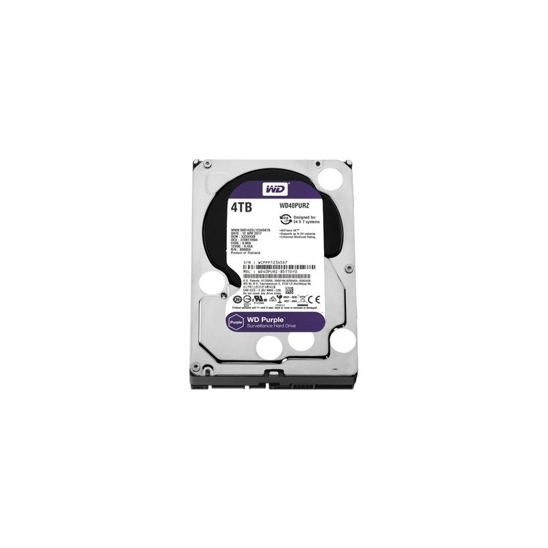 Disco Duro para Videovigilancia Western Digital Purple de 4 TB, 64 MB caché, 5400 RPM, SATA III (6 Gb/s).Modelo: WD40PURZCreado para sistemas de seguridad de alta definición, 24/7, siempre encendidos. Con un soporte para hasta 64 cámaras, las unidades WD Purple están optimizadas para vigilanciaEspecificacionesDisco DuroTipo: Disco Duro MecánicoCapacidad: 4TBVelocidad (rpm): 5400rpmInterfaz: SATA III (6.0 Gb/s)Memoria Caché: 64 MBFactor de Forma: 3.5"
