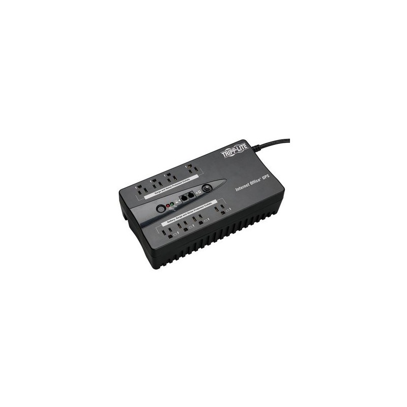 Detalle del Producto INTERNET550UUPS INTERNET550U Standby de Tripp Lite; ofrece completa protección para computadoras, estaciones de trabajo y otros dispositivos electrónicos delicados en un atractivo gabinete instalable ultra compacto. Evita la pérdida de datos y el tiempo muerto del sistema al proporcionar salida de CA soportada por baterías durante caídas de voltaje y apagones. 8 tomacorrientes, dos de los cuales se encuentran amnpliamente espaciados para alojar conectores de transformador grandes sin bloquear los tomacorrientes. 4 tomacorrientes proporcionan soporte de batería y supresión de sobretensión para proteger computadoras, monitores y otros componentes vitales del sistema contra la pérdida de datos. 4 tomacorrientes adicionales utilizados únicamente para supresión de sobretensiones son ideales para impresoras y otros accesorios que no requieren soporte de batería. Los enchufes para supresión en una línea telefónica protegen módems, faxes, teléfonos inalámbricos u otros periféricos conectados a una línea telefónica estándar o DSL. El USB con el software de monitoreo PowerAlert (se descarga de la red) y el cableado permiten el cierre sin supervisión del sistema en forma segura en caso de fallas prolongadas en el suministro eléctrico. El USB compatible con HID permite la integración con las funciones de administración de energía y desconexión automática de Windows y Mac OS X. La alarma acústica y los LEDs en el panel frontal ofrecen información sobre el estado relacionado con la línea y la operación de alimentación por batería. La capacidad de 550VA/300 watts de potencia soporta durante fallas del suministro eléctrico por hasta 10 minutos un sistema PC básico con un monitor pequeño que consuma 100 watts. $100,000 de Seguro Máximo de por Vida (EE. UU., Puerto Rico y Canadá únicamente).